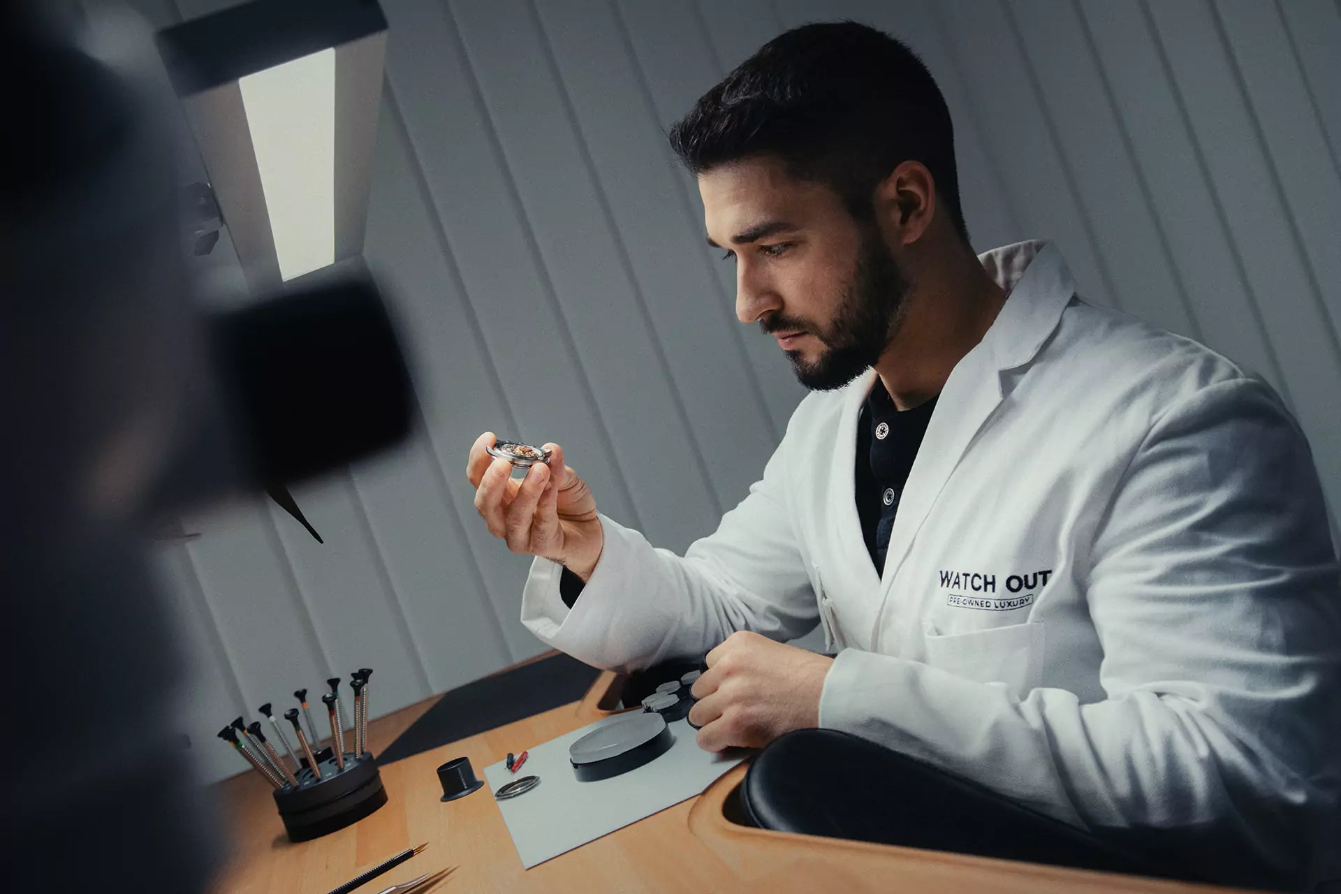 Wir erwerben gebrauchte Uhren von Privatverkäufern oder autorisierten Fachhändlern und bestätigen die Echtheit jeder Uhr durch zertifizierte Uhrmacher in unserem Watch Out Service Center.